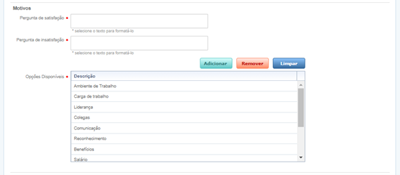 Através dessa funcionalidade é possível realizar as parametrizações da pesquisa do Termômetro das Emoções.