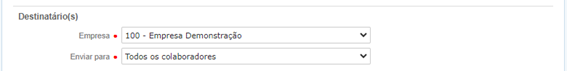 Após selecionar a Empresa, será possível Enviar para: Todos os Colaboradores, Grupo de Colaboradores ou Colaborador.