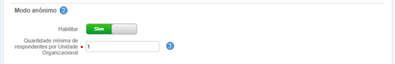 Para garantir que as respostas anônimas de colaboradores sejam indistinguíveis das respostas identificadas no Dashboard, informe a Quantidade mínima de respondentes por Unidade Organizacional, para que um número mínimo de pessoas de uma mesma unidade organizacional responda à pesquisa anonimamente e seus dados sejam mostrados nos gráficos do Dashboard.