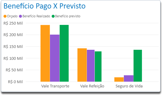 Através deste indicador é possível acompanhar o quanto já houve de gasto em Benefícios e o quanto está previsto a ser gasto de acordo com o headcount ativo.