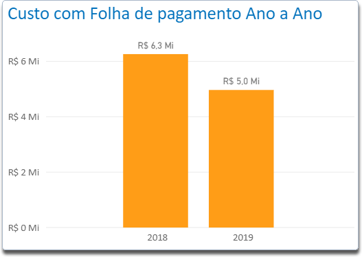 Através deste indicador é possível acompanhar a evolução dos gastos por ano de referência. O gráfico apresentará os dados de gastos efetuados com folha de pagamento consolidados por ano.