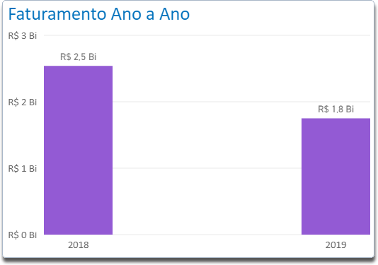 Através deste indicador é possível acompanhar o faturamento por ano de referência. O gráfico apresentará os dados de faturamento da empresa dos últimos 5 anos, se o mesmo o tiver.