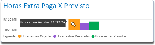Por meio desse indicador é possível acompanhar o volume de Horas Extras Pagas e o volume das horas extras Previstas de pagamento e/ou compensação.
