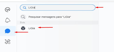 Como encontrar o Chatbot pelo Workplace? - Após salvar os passos da integração personalizada, o bot está pronto para comunicação na aba de “Chat” do Workplace.