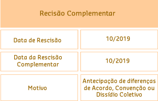 No eSocial, caso a rescisão do mês ainda não tenha sido enviada, a Rescisão Complementar será enviada juntamente com o S-2299 – Desligamento da ocorrência de Rescisão, porém com as informações de Antecipação de diferenças de Acordo, Convenção ou Dissídio Coletivo discriminadas no grupo de Informações de Períodos Anteriores.