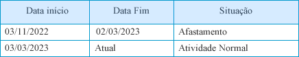 O colaborador João foi afastado de suas funções no dia 01/02/2023 sem previsão de retorno.