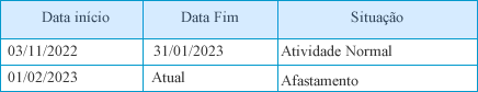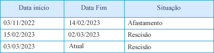 O colaborador João foi afastado de suas funções no perído de 03/11/2022 a 02/03/2023.