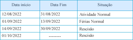 Os históricos com situação Afastamento terá sua vigência encerrada no dia anterior à data da rescisão, independente do período do afastamento.