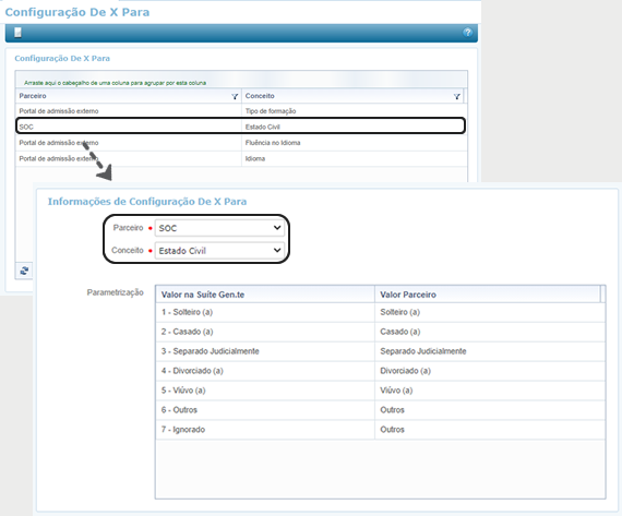 Informações de configuração de x para, selecione o Parceiro