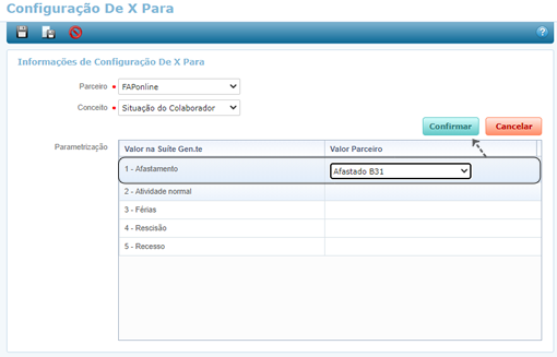 Após a seleção do Parceiro e Conceito relacione,