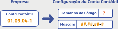 O padrão utilizado da conta contábil na empresa Demonstração LTDA é de 7 dígitos, composto somente por números e utiliza ( . ) ponto e ( - ) hífen, então a Máscara será cadastrada da seguinte forma:![]()