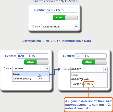 • Ao alterar algum dado da configuração e informar uma nova Data, inicia-se uma nova vigência e encerra o período anterior.