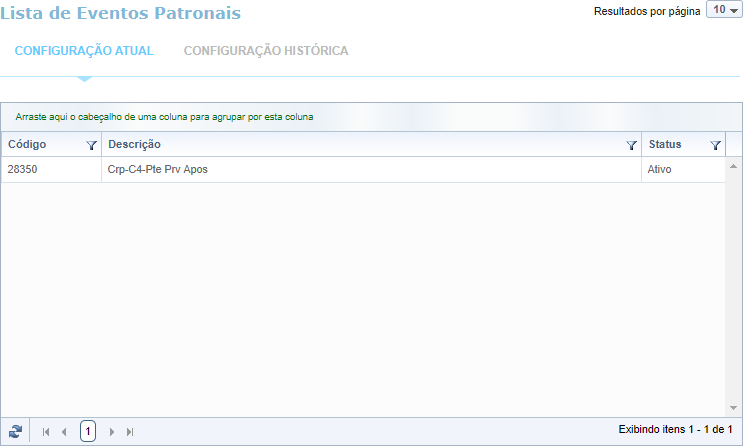 Configuração Atual - Eventos patronais válidos para a Configuração da Conta Contábil da vigência corrente.