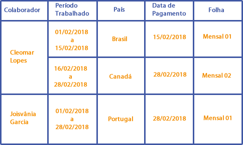 Como o colaborador Cleomar tem pagamentos na mesma competência com residência em países