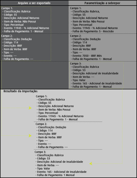 for importado com a opção Sobrepor parametrização marcada, os campos parametrizados serão