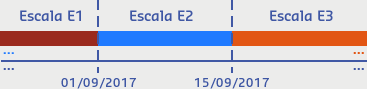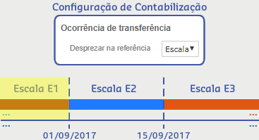 Considerando a referência do sistema em 09/2017, temos o colaborador João Silva, que trabalhava associado a escala E1. No dia 01/09/2017, o João Silva foi transferido para a escala E2, e no dia 15/09/2017 foi transferido para a escala E3.