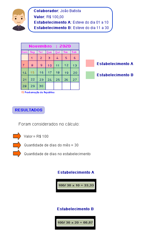 Cálculo normal realizado em novembro para o evento ‘X’ com 100 reais.