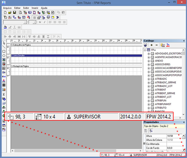 As informações de logon podem ser verificadas na barra de status da janela principal do Gen.te Relata conforme a imagem abaixo: