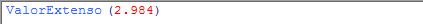 A função ValorExtenso transforma o valor numérico inserido em um valor numérico por extenso. Valores numéricos do tipo real serão truncados para inteiro antes de serem utilizados para obtenção do valor por extenso.
