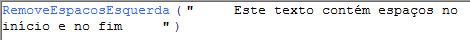 A função RemoveEspacosEsquerda remove os espaços existentes à esquerda do texto.