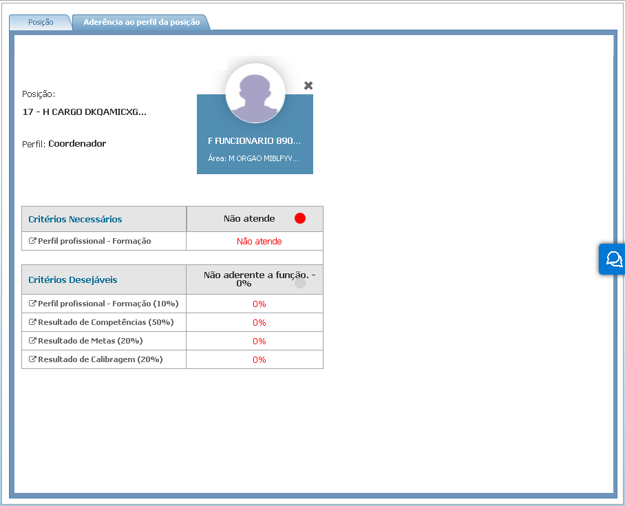 Através dessa guia é permitido uma análise de aderência ao perfil da posição que será exibido para usuários colaboradores e gestores: