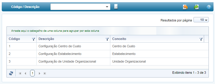 Utilize um determinado conceito para cadastrar uma Configuração de/para, podendo ser: Centro de Custo, Empresa, Estabelecimento, Fornecedor, Fornecedor (Pensionista), Sindicato ou Unidade Organizacional.