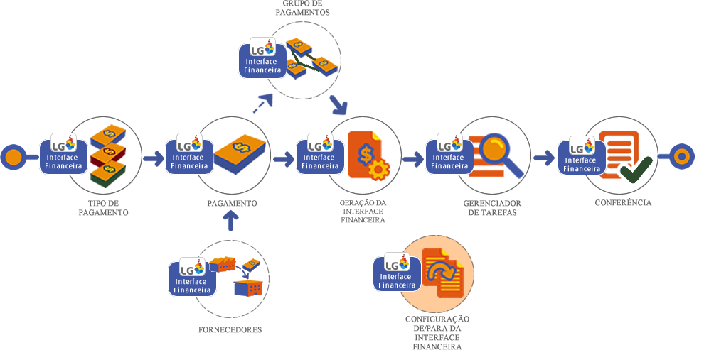 Na lista de configurações de/para da Interface Financeira é possível realizar algumas operações, como: importar, exportar, ordenações, filtros e agrupamentos. Para saber mais clique aqui.