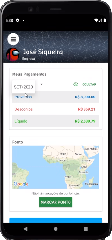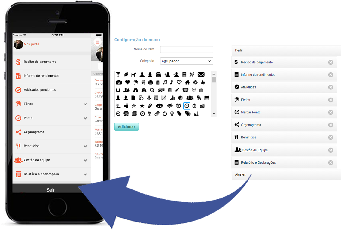 Caso o menu não seja configurado, este então exibirá todas as Categorias existentes, e o aplicativo apresentará o menu de acordo com a configuração de visibilidade de cada colaborador.