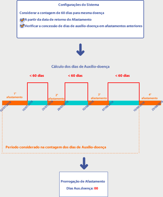 O sistema irá, a partir da Data de Início do afastamento que está sendo cadastrado verificar se, dentro de 60 dias, há algum afastamento de mesma doença.