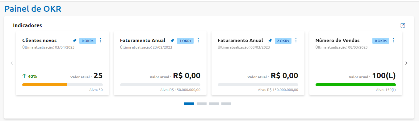 • Número de OKR’s que possuem associados ao indicador, independente de quadro ou ciclo.