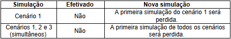 Ao simular novamente um cenário já simulado, o processamento anterior será substituído por uma nova simulação.