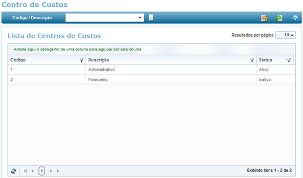 Na Lista de Centro de Custos, é possível realizar algumas operações, como: ordenações, filtros e agrupamentos. Para saber mais clique aqui.