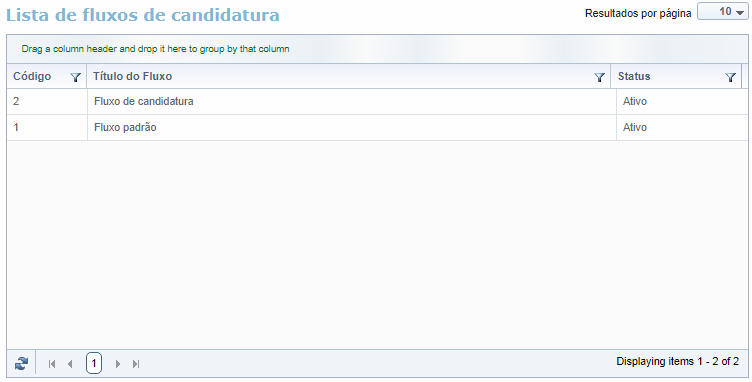 fluxos de candidaturas cadastrados, possibilitando agrupar,