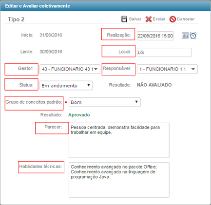 Informe também os resultados da avaliação, independente de