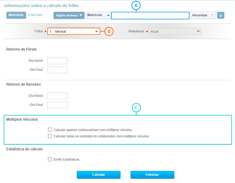 Calcular apenas colaboradores com múltiplos vínculos - caso seja selecionada essa opção será considerado no cálculo apenas os colaboradores que possuem múltiplos vínculos.