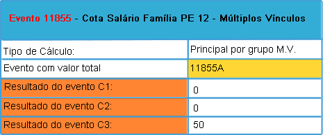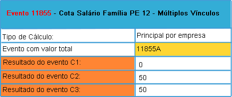 2 - No cadastro de ocorrência de Múltiplos Vínculos para esse colaborador foi definido como contrato principal da empresa os C2 e C3. Considerando que, o salário família deverá ser calculado apenas no contrato principal da empresa, teremos as seguintes para parametrizações: