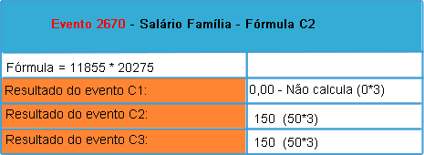 • O evento de salário família foi impactado indiretamente devido ao ajuste no evento que retorna a cota de salário família no evento anterior, conforme imagem abaixo: