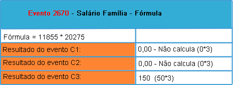 • O evento de salário família foi impactado indiretamente devido ao ajuste no evento que retorna a cota de salário família no item anterior, conforme imagem abaixo:
