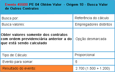 • Criar um evento para buscar o valor de desconto de INSS de outros contratos utilizando PE 04 Origem 10, conforme imagem abaixo: