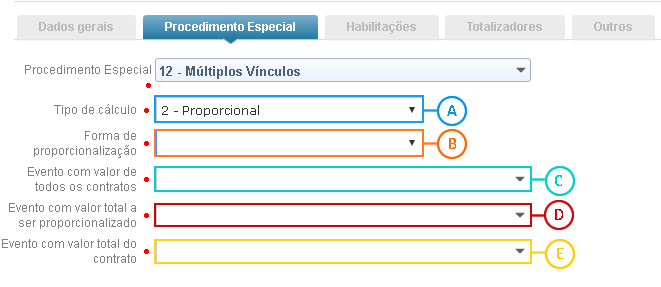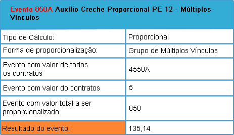 Esse tipo de cálculo gerar um valor proporcionalizado em todos os contratos. Para isso é necessário indicar o evento que será proporcionalizado, o evento com valor total de todos os contratos e o evento com o valor apenas do contrato que está sendo proporcionalizado.