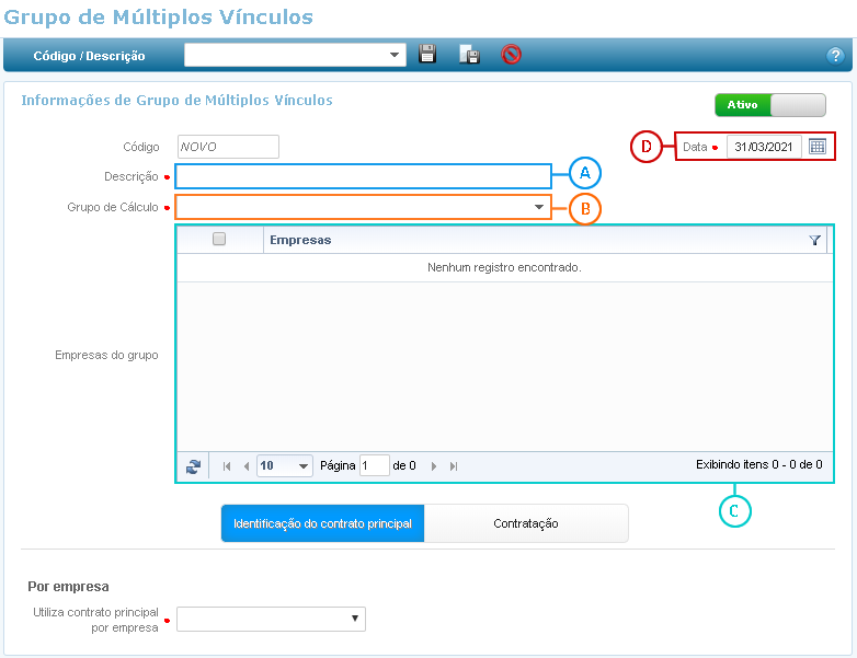a Data de referência. É a partir dessa data que o Grupo de Múltiplos Vínculos será válido.