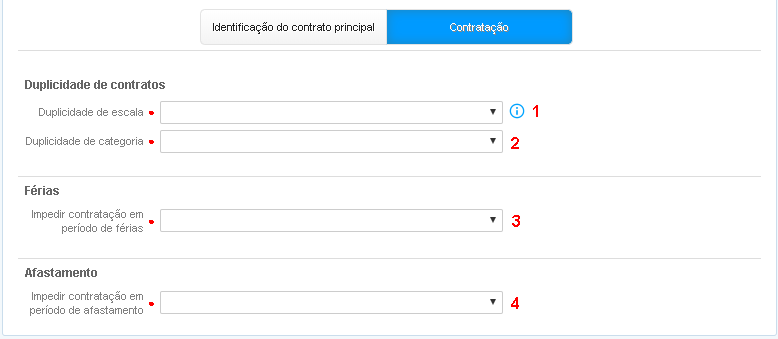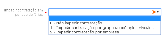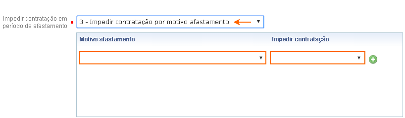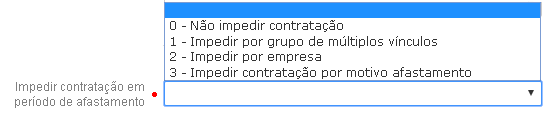 não contratação em período de afastamento. As opções disponíveis são: