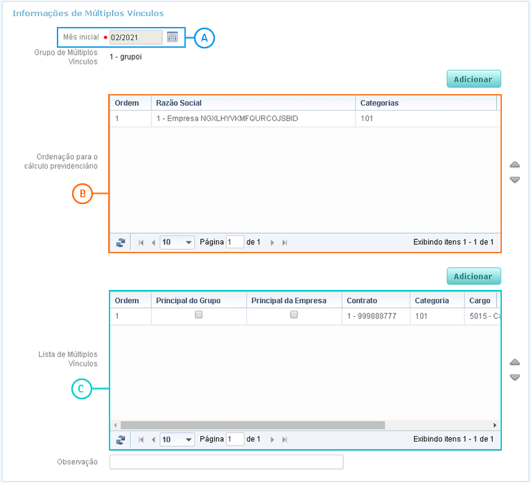 • A seção Múltiplos Vínculos só será apresentada se o operador tiver permissão concedida na funcionalidade Configurar Permissões para o cálculo de múltiplos vínculos.