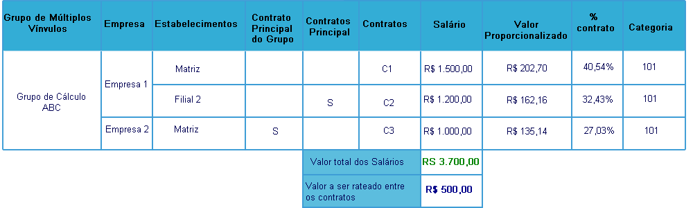 Grupo de Múltiplos Vínculos - o sistema irá realizar a proporção considerando todos os contratos de todas as empresas do grupo de múltiplos vínculos.