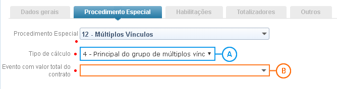Através do tipo de cálculo Principal por grupo de múltiplos vínculos, o sistema irá calcular o valor apenas no contrato parametrizado como sendo o principal por grupo de múltiplos vínculos na ocorrência de múltiplos vínculos. Lembrando que, esse tipo de parametrização fica disponível na funcionalidade Grupo de Múltiplos Vínculos na guia Contratação.