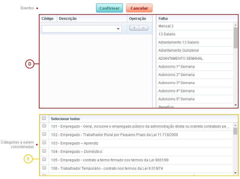 colaborador, com valor da base de INSS correspondente a categoria que está sendo cadastrada. Se o
