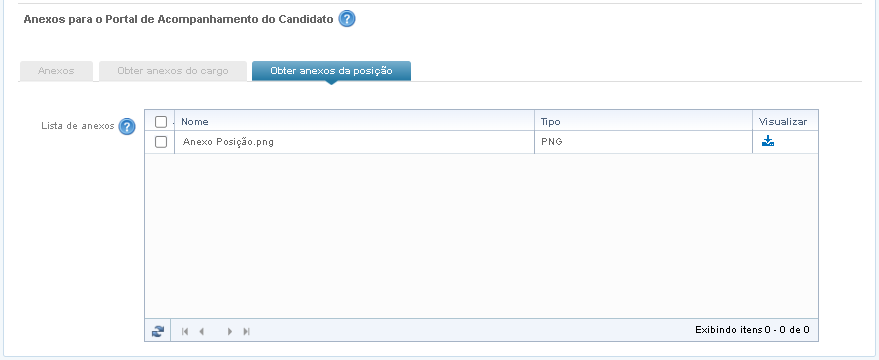 Em e é permitido obter os anexos de cargo ou da posição respectivamente, selecionando os documentos através de checkbox.