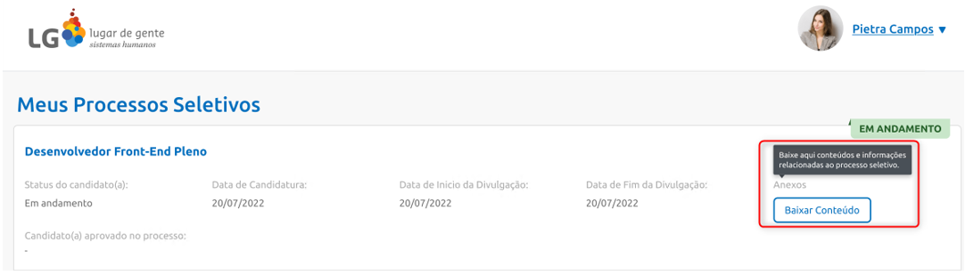 Os documentos anexados na configuração do Processo Seletivo na Suíte Gen.te serão apresentados no Painel de Acompanhamento do Candidato.
