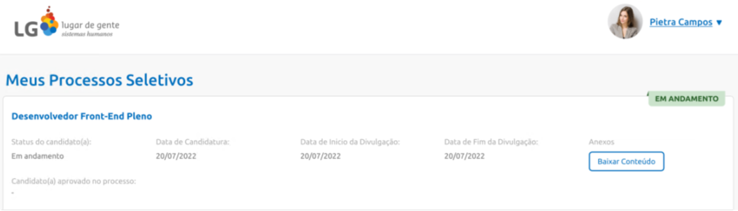 Após realizar as configurações necessárias na Suíte Gen.te, o painel de acompanhamento será apresentado através do Portal de Vagas do Candidato e do Colaborador.