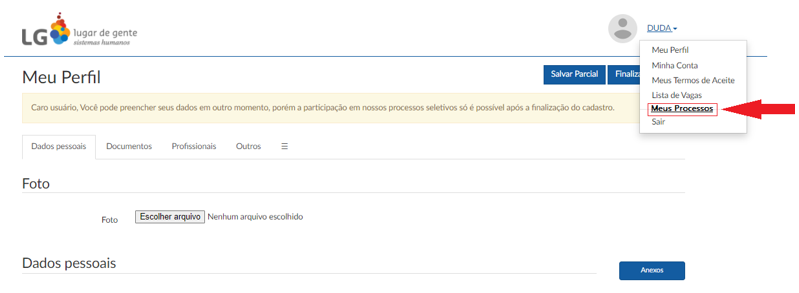 Acompanhar Processo Seletivo no Portal do Candidato/Colaborador